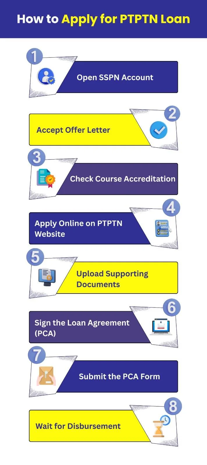 Applying for a PTPTN education loan in Malaysia doesn’t have to be complicated. Whether you’re just starting your studies or already accepted into a university, here are 8 simple steps to follow;